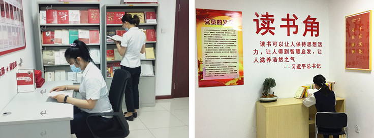 部分黨支部根據自身情況,增設“黨員、職工學習桌”、“讀書角”讓廣大黨員同志在工作之余從書中汲取營養,開闊視野,提升黨性修養。