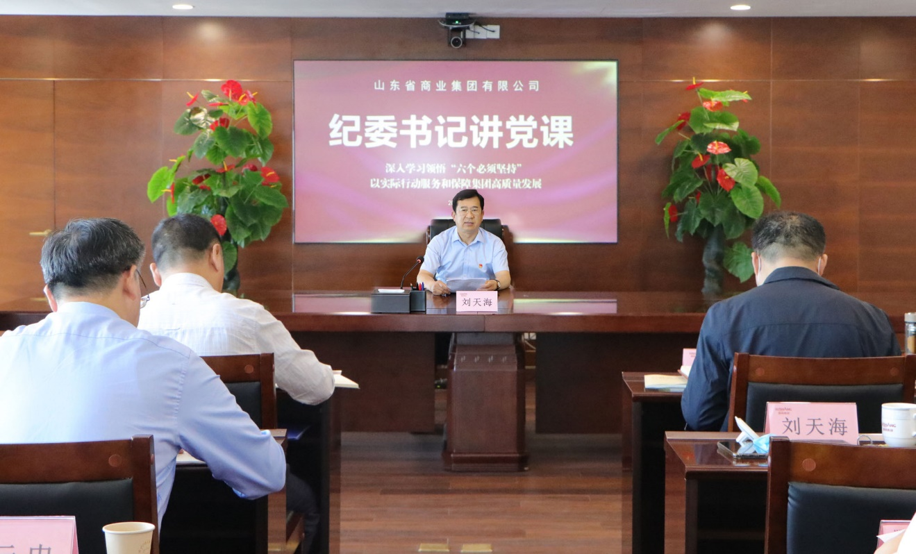 為扎實開展學習貫徹習近平新時代中國特色社會主義思想主題教育,6月5日,魯商集團黨委常委、紀委書記、省監(jiān)委駐集團監(jiān)察專員劉天海圍繞“深入學習領悟‘六個必須堅持’ 以實際行動服務和保障集團高質(zhì)量發(fā)展”為集團黨員干部講專題黨課。集團黨委書記、董事長王緒超,黨委副書記、董事劉守亮,黨委副書記、董事、副總經(jīng)理朱華建,黨委常委、董事、總審計師、工會主席劉德華參加,黨委常委、董事、組織人力資源部部長李林主持。
