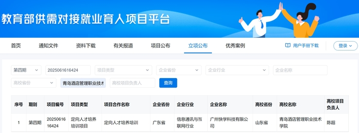 青島酒店管理職院1個(gè)項(xiàng)目入選教育部供需對(duì)接就業(yè)育人項(xiàng)目