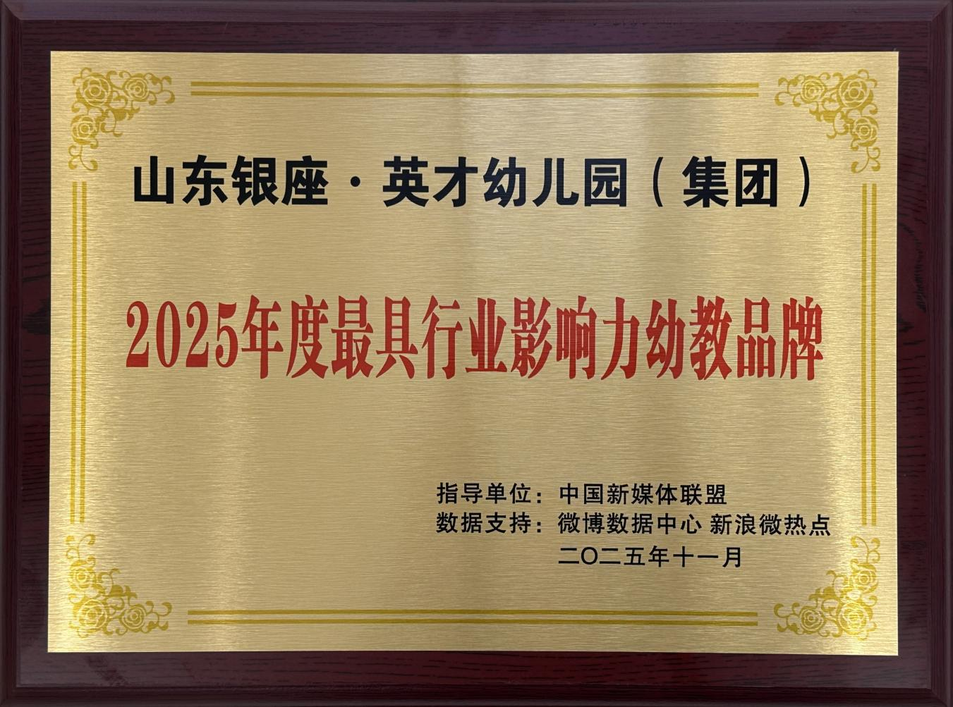 銀座幼教獲評“2025年度最具行業影響力幼教品牌”