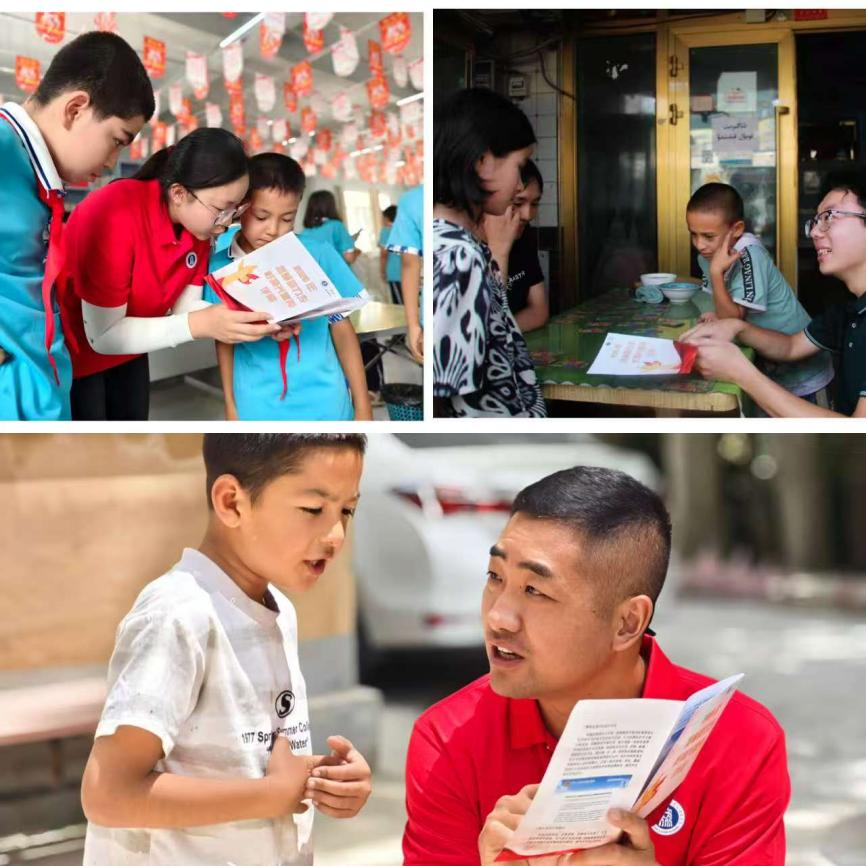 為大力推廣普通話,讓普通話真正走進群眾生活,青喀聯(lián)合實踐隊深入新疆喀什地區(qū)的多個縣城,開展多樣化的普通話推廣與文化交流活動。在疏附縣托克扎克鎮(zhèn)中心小學(習近平總書記2014年4月到訪地)開設(shè)趣味科普課堂,在喀什古城街邊設(shè)立流動教學點,在葉城縣藍橋社區(qū)餐廳開設(shè)午間小課堂,還深入偏遠小村開展入戶教學,在葉城縣易地搬遷宣教館宣講;同時將服務(wù)陣地向基層延伸,走進卡拉塔西庫執(zhí)勤點與戍邊員圍坐交流,在博?。?)村夜校為中青年群體開展系統(tǒng)普通話培訓,以語言為紐帶助力他們展現(xiàn)擔當;更具深意的是,青喀聯(lián)合實踐隊循著習近平總書記的足跡,探訪了帶領(lǐng)村民依靠先進技術(shù)共富的致富能手阿卜都克尤木·如則,走訪了博?。?)村老黨員并聆聽紅色往事,讓奮斗故事與時代記憶在鄉(xiāng)音閑談中煥發(fā)新聲。